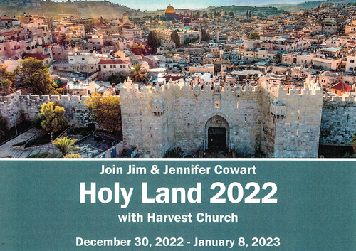 Join Jim and Jennifer Cowart, along with believers from Harvest Church, on a 10 day Holy Land Experience.